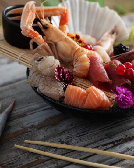 A pranzo, nonostante il nostro ristorante specializzato in cruditè di pesce fresco, proponiamo una carta più semplice e snella dove sono presenti anche fresche insalate e poké. Per la cena abbiamo pensato ad un menù più strutturato e ricco per coinvolgere, sorprendere ed emozionare l’ospite con le nostre prelibatezze di pesce fresco.
