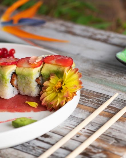 Bollicine e appetizers di sushi per un momento di puro gusto e benessere.